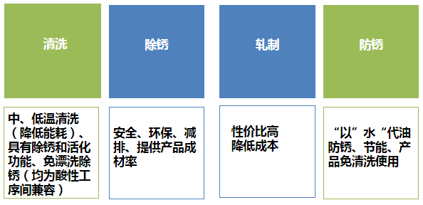 5、国内大型轧钢企业使用的清洗剂、轧制液、防锈清洗剂、防锈油大部分为国外产品(除盐酸、硫酸外),价格高;